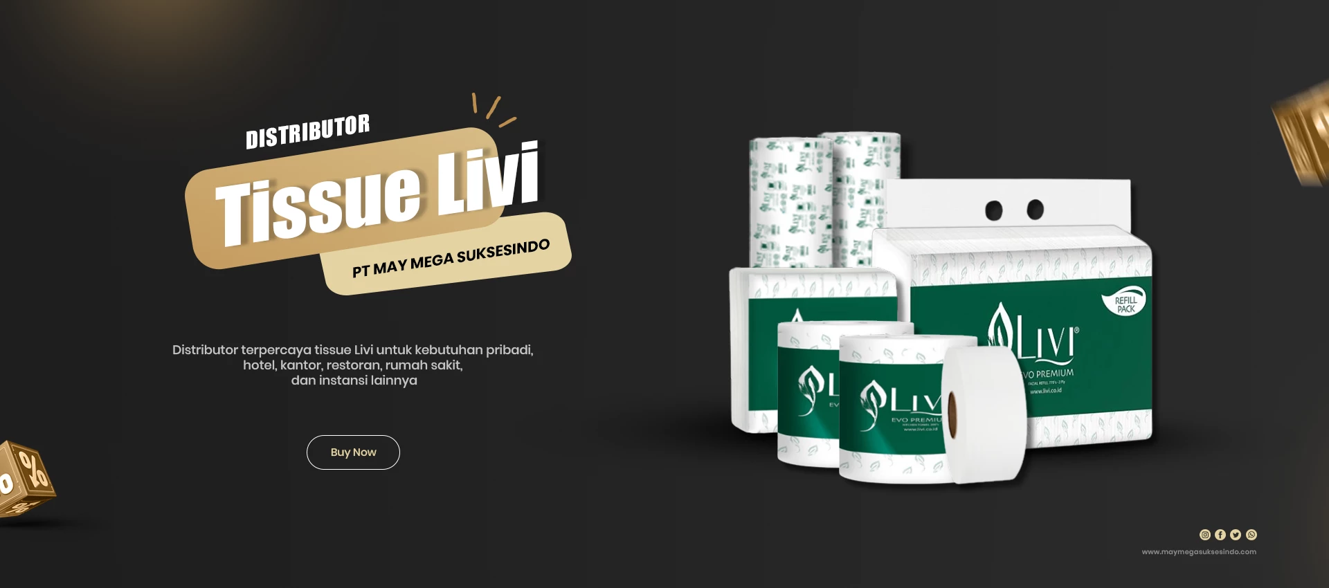 PT May Mega Suksesindo adalah perusahaan terpercaya yang bergerak di bidang distribusi tissue Livi dan penyedia custom merchandise berkualitas dengan harga terjangkau. Sebagai Distributor Tissue Livi terpecaya yang berkantor pusat di Tangerang & Jakarta Barat, kami telah melayani berbagai kebutuhan perusahaan, instansi, hotel, restoran (HORECA), hingga perorangan di seluruh Indonesia.